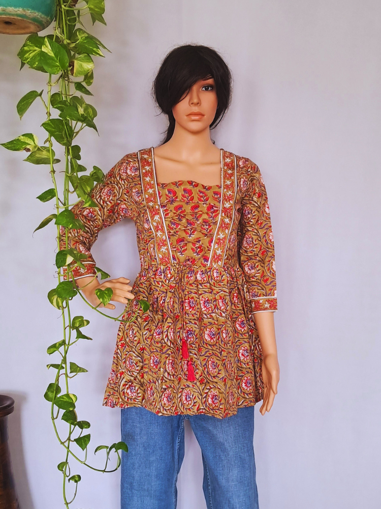 This beautiful Hand block print short kurti for women for Casual wear gives you the perfect look and is a friendly fit for all body type.